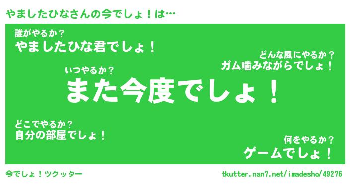 | ヒーロー風カッコイイあだ名 | 『スーパーヤマシタヒナ』『魔戒騎士ヤマ』 |