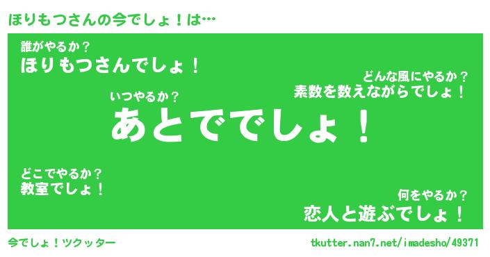 | 意味不明あだ名 | 『ペロリンほりもつ』『永久保存ほりもつ』 |