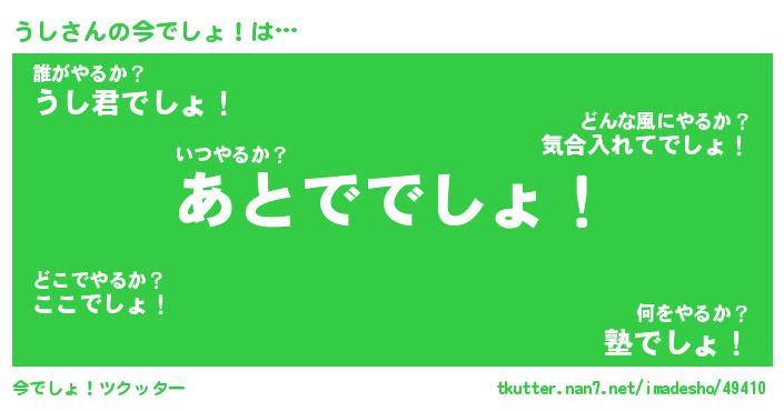 | ヘコむあだ名 | 『うしにー』『豆乳』『うしっ子』 |