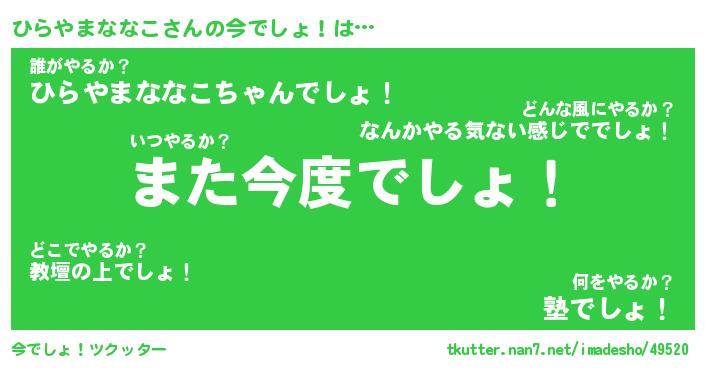 | 伝説のあだ名 | 『封印されしスナイパーひらやまななこ』 |