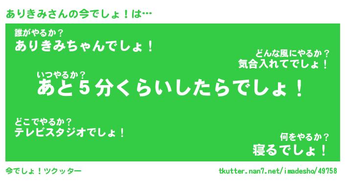 | 意味不明あだ名 | 『ペロリンありきみ』『永久保存ありきみ』 |