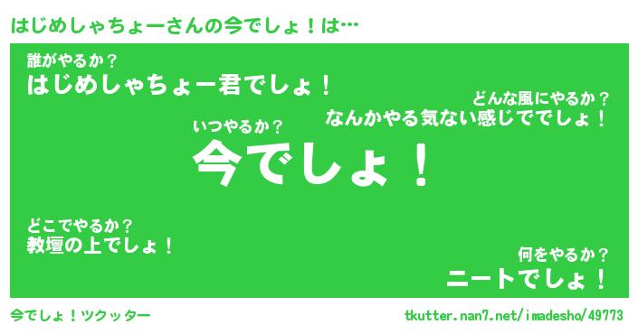| 伝説のあだ名 | 『伝説のスナイパーはじめしゃちょー』 |