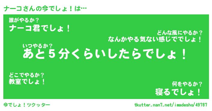 | ヘコむあだ名 | 『ナーもー』『なまこ酢』『ナーっぺ』 |