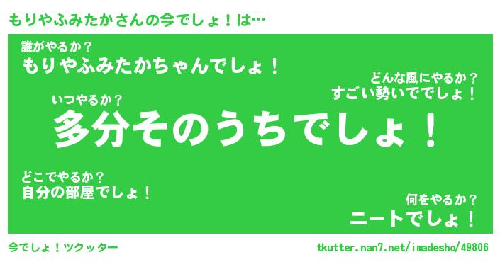 | 男性向けラノベタイトル風あだ名 | 『もりやふみたかの憂鬱』 |