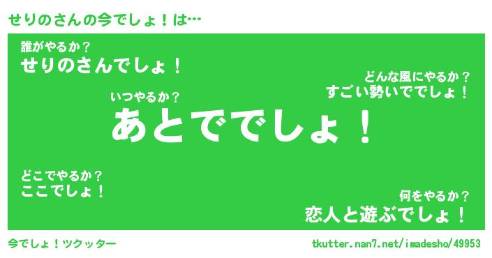 | 胡散臭い通販商品みたいなあだ名 | 『モテモテ間違いなし霊験あらたかなお札…その名も「せりの」』 |