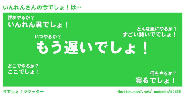 | ヘコむあだ名 | 『いんもー』『なまこ酢』『いんっぺ』 |