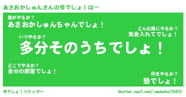 | 伝説のあだ名 | 『不死鳥のスナイパーあさおかしゅん』 |