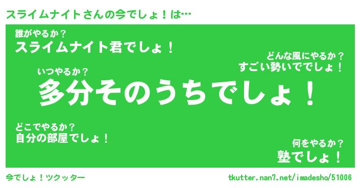 | 胡散臭い通販商品みたいなあだ名 | 『モテモテ間違いなしブレスレット…その名も「スライムナイト」』 |