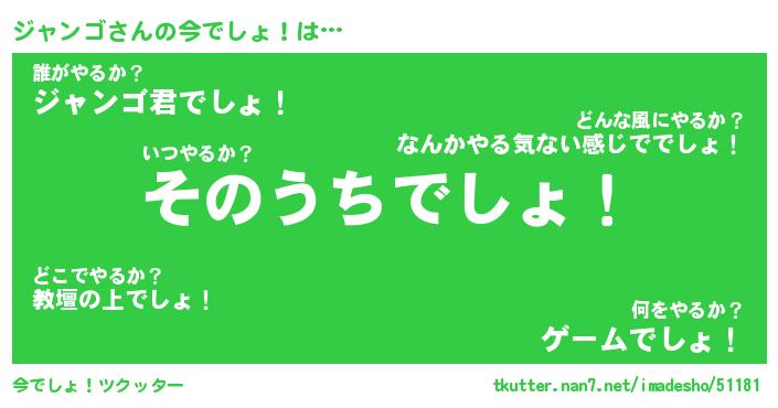 | 意味不明あだ名 | 『ペロリンジャンゴ』『永久保存ジャンゴ』 |