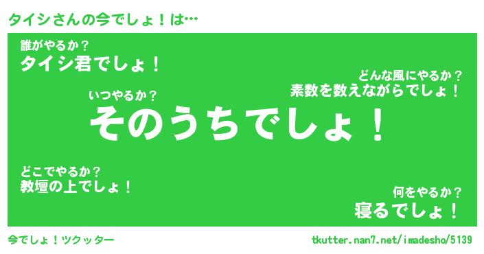 | ヒーロー風カッコイイあだ名 | 『スーパータイシ』『ウルトラタイシマン』 |