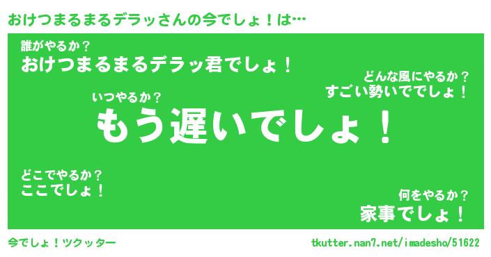 | 男性向けラノベタイトル風あだ名 | 『おけつまるまるデラッの憂鬱』 |