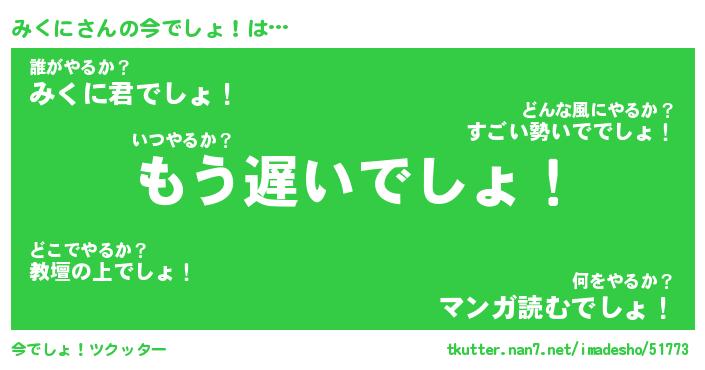 | ピコ太郎風あだ名 | 『ミコ次郎』『ピミ三郎』『ミク二郎』 |