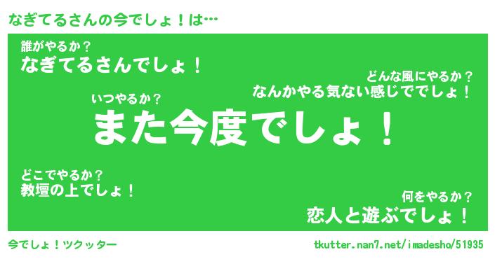 | 欧米人風あだ名 | 『マイケルなぎてる』『ウサインなぎてる』 |