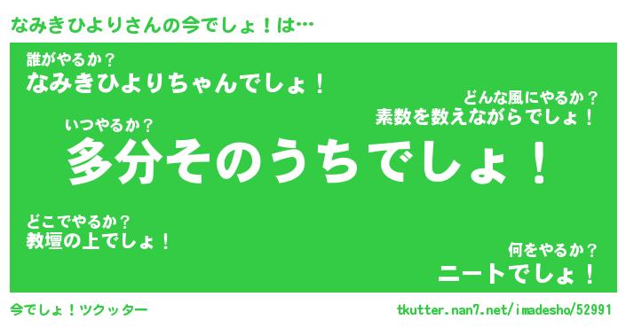 | 伝説のあだ名 | 『不死鳥のスナイパーなみきひより』 |