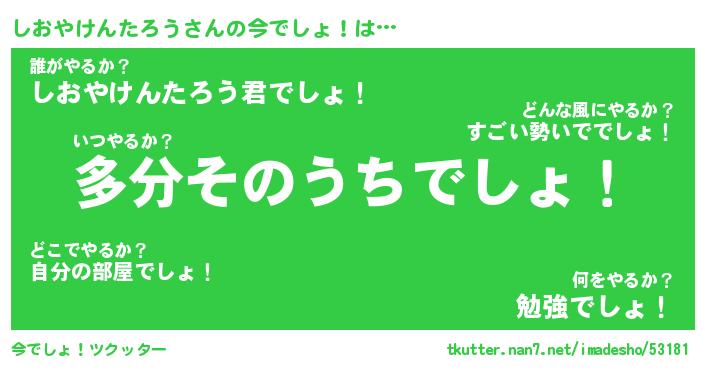 | 男性向けラノベタイトル風あだ名 | 『しおやけんたろうの憂鬱』 |
