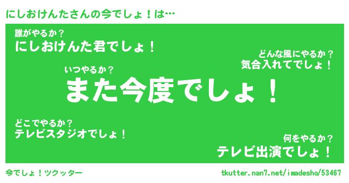 | 恥ずかしいあだ名 | 『プリティーにしおけんた』『にしっちょ』 |