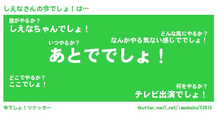 | 恥ずかしいあだ名 | 『プリティーしえな』『しえっちょ』 |