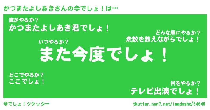 | 伝説のあだ名 | 『封印されしスナイパーかつまたよしあき』 |