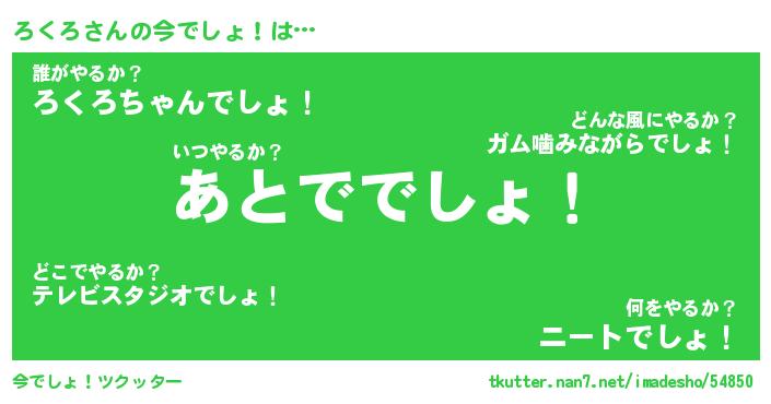 | ヘコむあだ名 | 『ろくもー』『レバニラ』『ろく太郎』 |