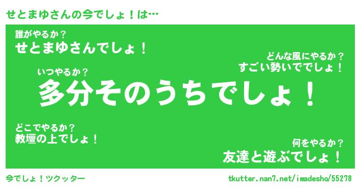 | 伝説のあだ名 | 『不死鳥のスナイパーせとまゆ』 |