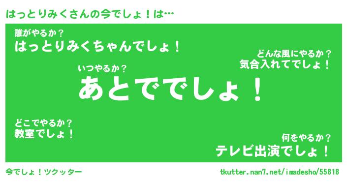 | 胡散臭い通販商品みたいなあだ名 | 『モテモテ間違いなし水晶球…その名も「はっとりみく」』 |