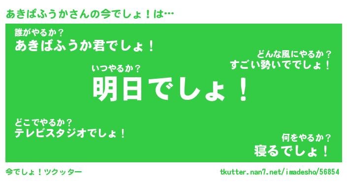 | 恥ずかしいあだ名 | 『プリティーあきばふうか』『あきっちょ』 |