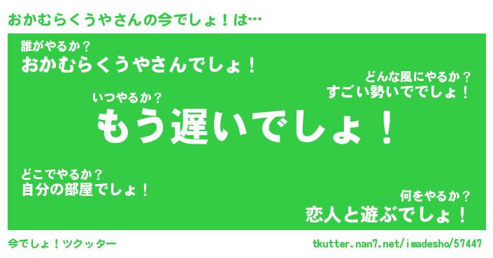 | 女子向けラノベタイトル風あだ名 | 『(仮)おかむらくうやのやんごとなき事情』 |
