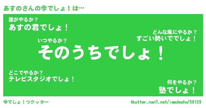 | ヘコむあだ名 | 『あすにー』『なまこ酢』『あすっぺ』 |