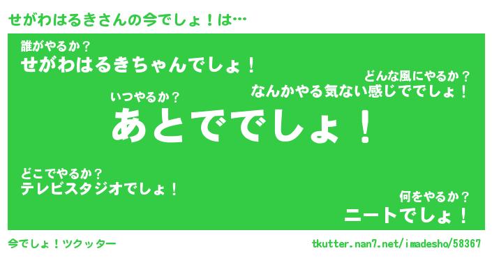 | 恥ずかしいあだ名 | 『プリティーせがわはるき』『せがっちょ』 |