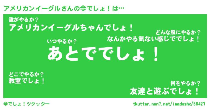 | 料理風あだ名 | 『節約★アメリカンイーグルと油揚げの玉子丼』 |