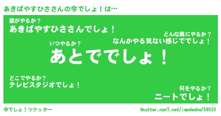 | 肩書あだ名 | 『あきばやすひさ社長』 |