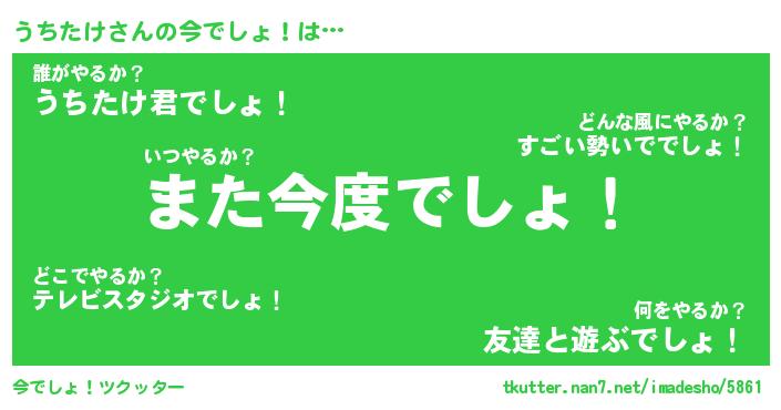 | 意味不明あだ名 | 『ペロリンうちたけ』『永久保存うちたけ』 |