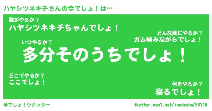 | ヘコむあだ名 | 『ハヤにー』『酢こんぶ』『ハヤ太郎』 |