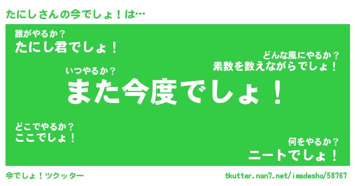 | ヒーロー風カッコイイあだ名 | 『スーパータニシ』『ウルトラたにしマン』 |