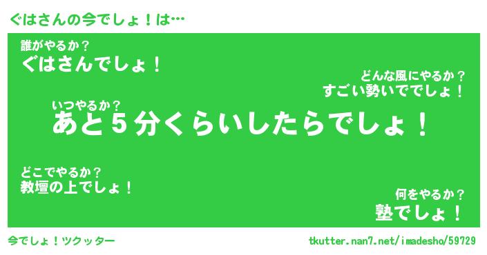 | ヒーロー風カッコイイあだ名 | 『スーパーグハ』『ウルトラぐはマン』 |
