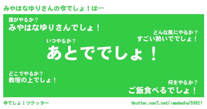 | ヒーロー風カッコイイあだ名 | 『スーパーミヤハナユリ』『炎刃騎士ミヤ』 |