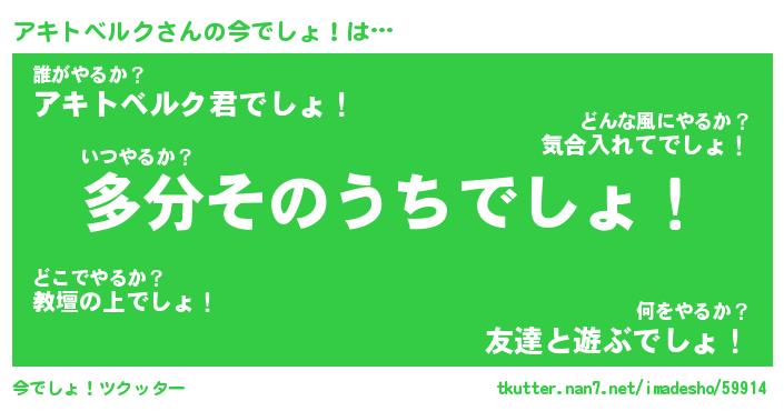 | 男性向けラノベタイトル風あだ名 | 『アキトベルクの憂鬱』 |