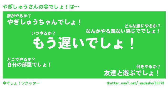 | 男性向けラノベタイトル風あだ名 | 『やぎしゅうの憂鬱』 |