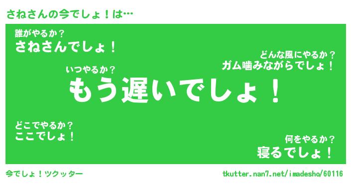| 肩書あだ名 | 『さね御曹司』『さね総理大臣』 |
