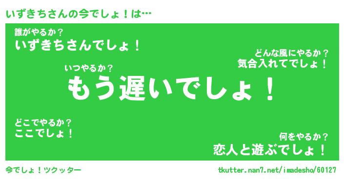 | 男性向けラノベタイトル風あだ名 | 『いずきちの憂鬱』 |