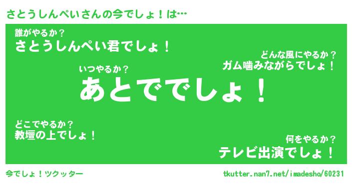 | ピコ太郎風あだ名 | 『サコ二郎』『ピサ八郎』『サト四郎』 |