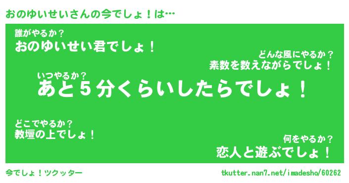 | 伝説のあだ名 | 『不死鳥のスナイパーおのゆいせい』 |