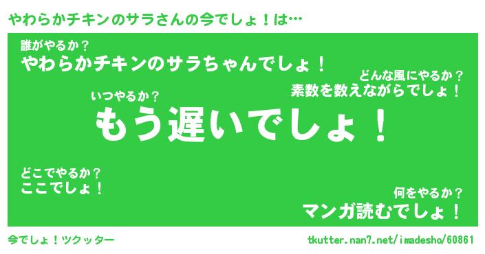 | 男性向けラノベタイトル風あだ名 | 『やわらかチキンのサラの憂鬱』 |