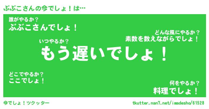 | 料理風あだ名 | 『節約★ぶぶこと油揚げの玉子丼』 |