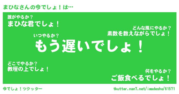 | 肩書あだ名 | 『まひな御曹司』『まひな国家主席』 |