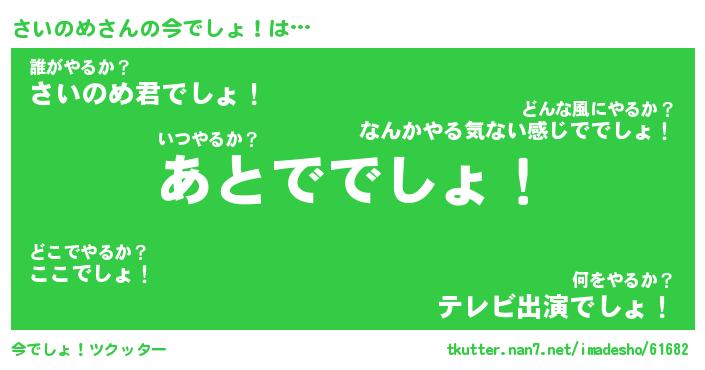 | 意味不明あだ名 | 『ペロリンさいのめ』『永久保存さいのめ』 |