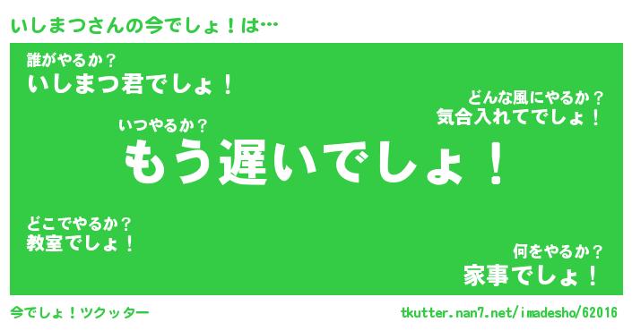 | 胡散臭い通販商品みたいなあだ名 | 『必ず成功するブレスレット…その名も「いしまつ」』 |