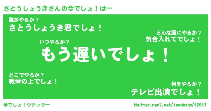 | 胡散臭い通販商品みたいなあだ名 | 『必ず成功する霊験あらたかなお札…その名も「さとうしょうき」』 |