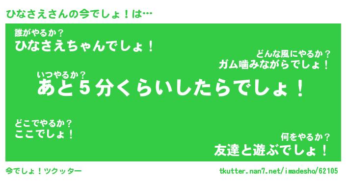 | ヒーロー風カッコイイあだ名 | 『スーパーヒナサエ』『天弓騎士ヒナ』 |