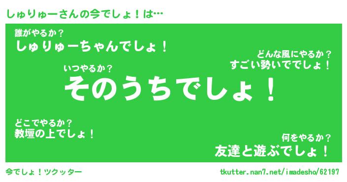 | ヒーロー風カッコイイあだ名 | 『スーパーシュリュー』『天弓騎士シュ』 |